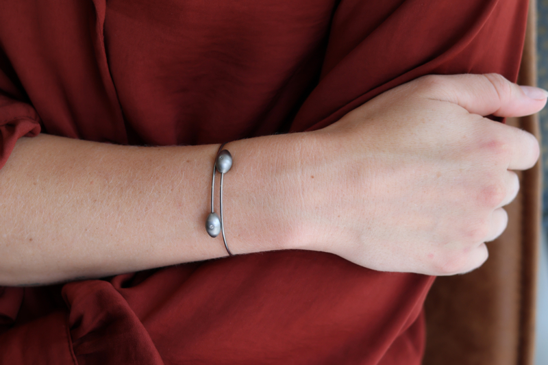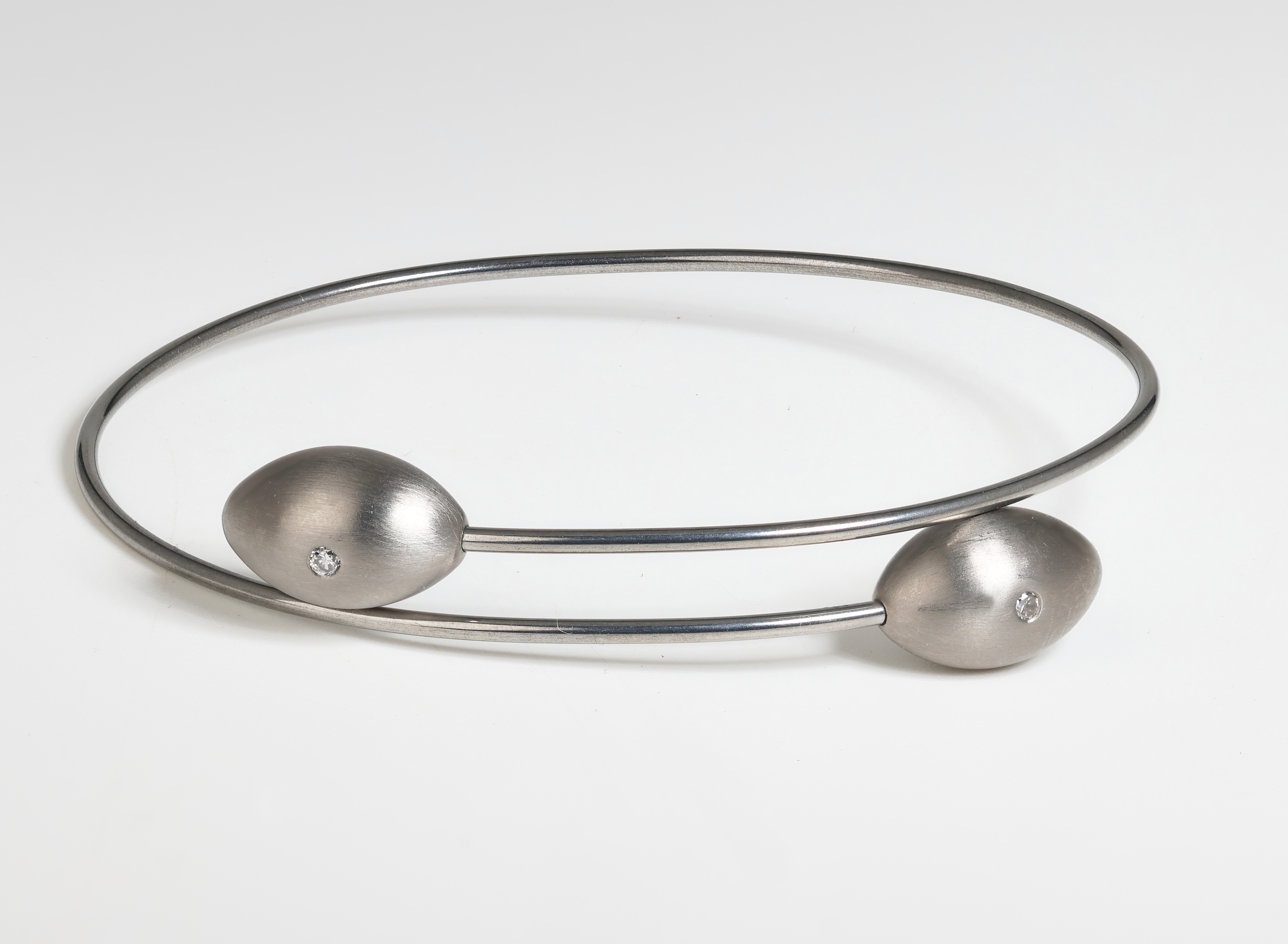 Minimalistisch, stijlvol en onverwoestbaar. Deze handgemaakte armband van memory titanium veert altijd terug in zijn originele vorm. Aan de uiteinden schittert een subtiel diamantje, stijlvol verwerkt in titanium elementen.