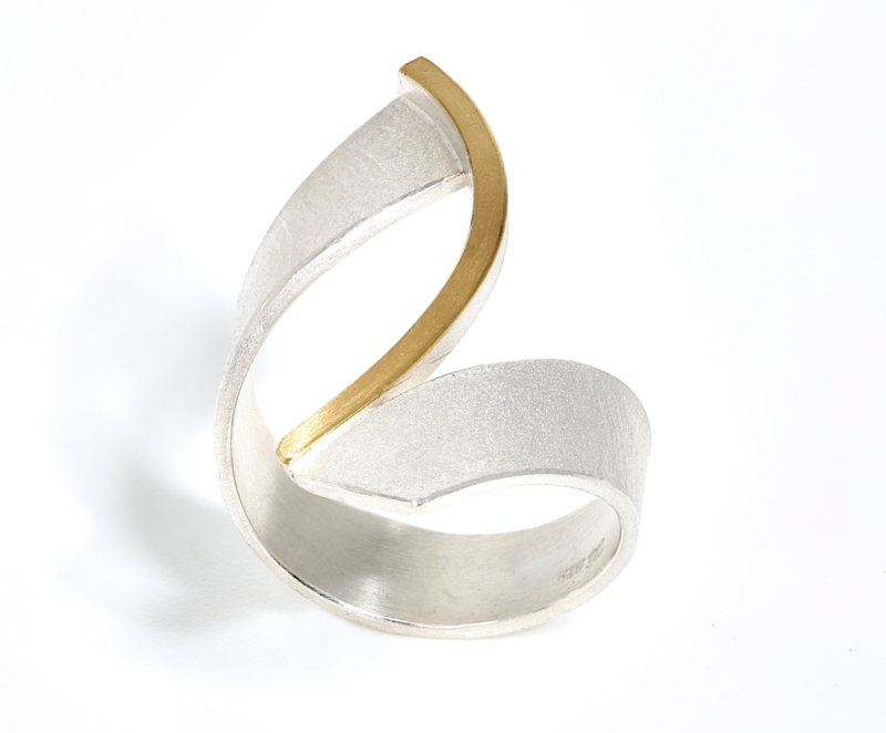 Stijlvolle zilveren ring met een elegant gouden accent, ontworpen door Manu Schmuck. De ring heeft een moderne, verfijnde uitstraling en is met zorg handgemaakt.