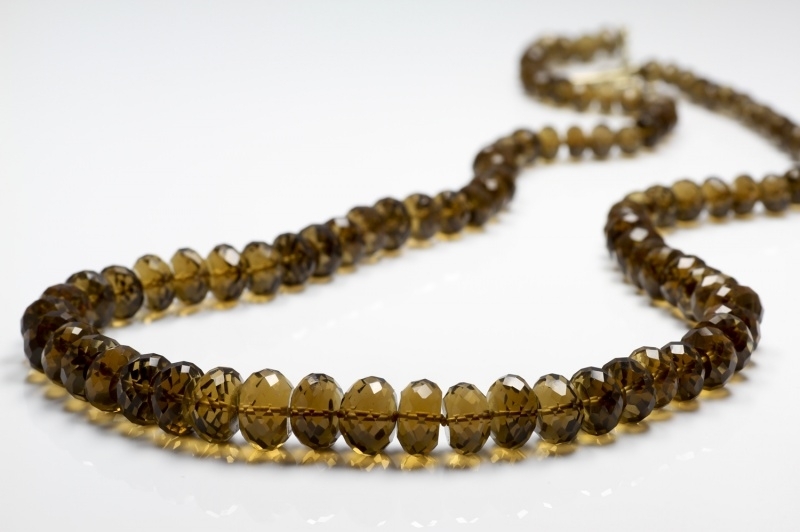 Collier met facet geslepen rookkwarts stenen. Deze ketting bevat rookkwarts stenen in diverse groottes, varierend van 6 - 12 mm. Dit collier heeft een gouden slot, welke op verschillende lengtes af te stellen is.