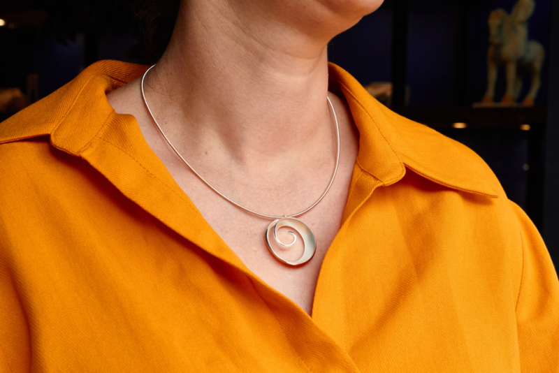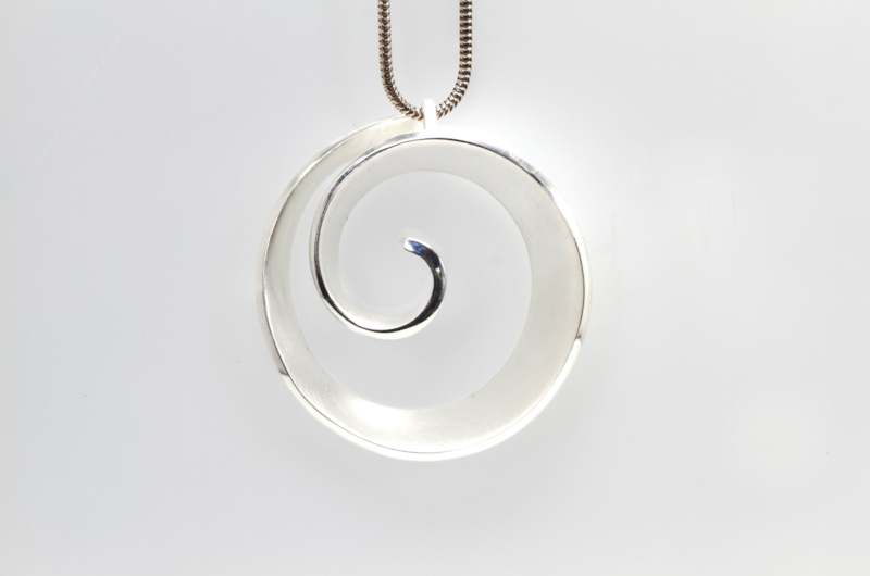 Mat zilveren hanger met een open spiraal, de bovenkant van de priraal is gepolijst. De hanger is 4 cm groot. De prijs is exclusief ketting, wilt U de ketting erbij mail me gerust info@gold-line.nl voor de mogelijkheden.