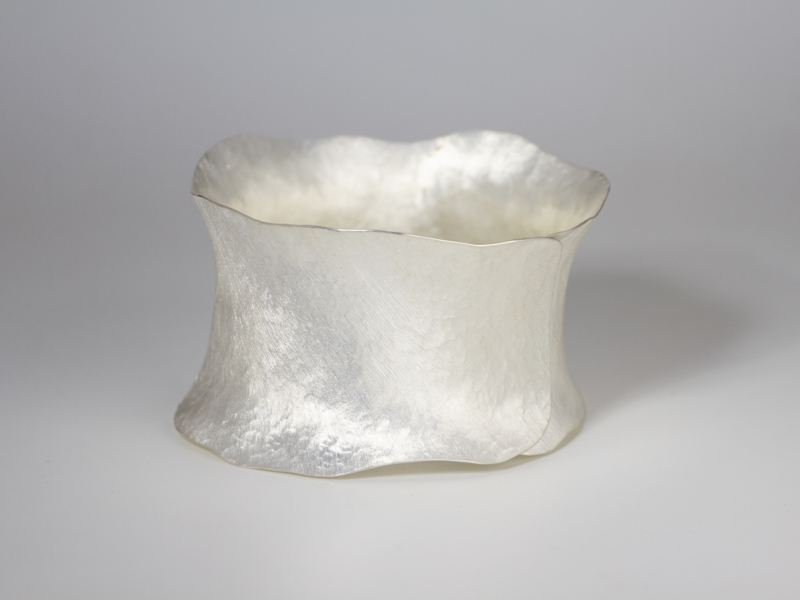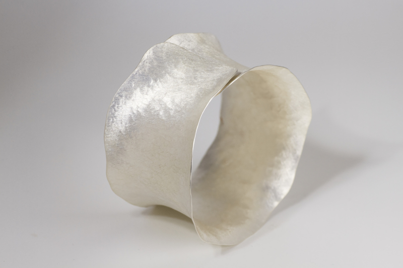 Zilveren kras mat geschuurde armband gemaakt door Deco Echo uit Polen. De armband wordt over de hand geschoven om aan en af te doen, dus een armband zonder sluiting. Een echte blikvanger van 4 cm breed. De binnen diameter is 62 mm.