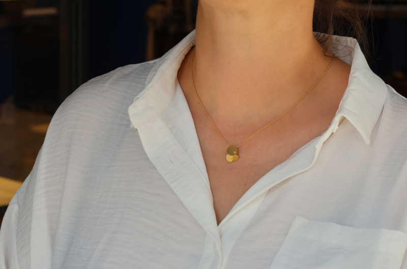Tezer gouden hanger met 3 ronde plaatjes