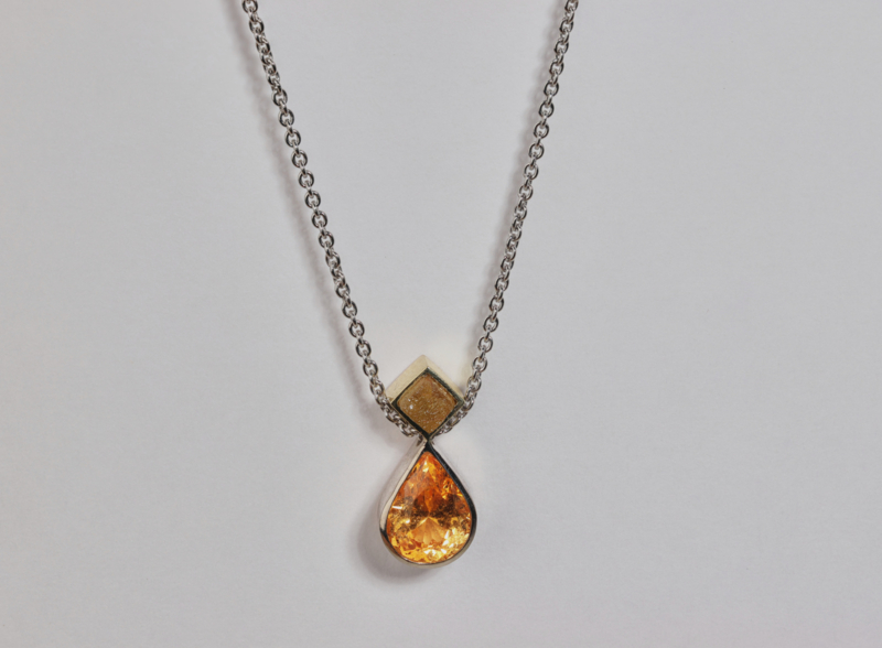 Mandarijn granaat hanger met ruwe diamant