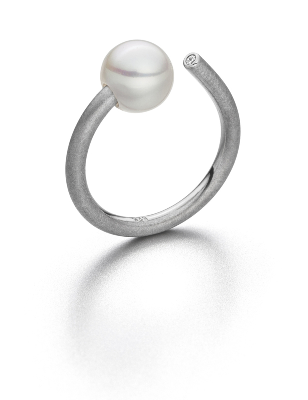 Mat zilveren ring met een witte parel en in de kopse kant van de ring is een kleine diamantje gezet. De ring heeft maat 17,5 en kan op meerdere maten geleverd worden vraag gerust naar de mogelijkheden info@gold-line.nl