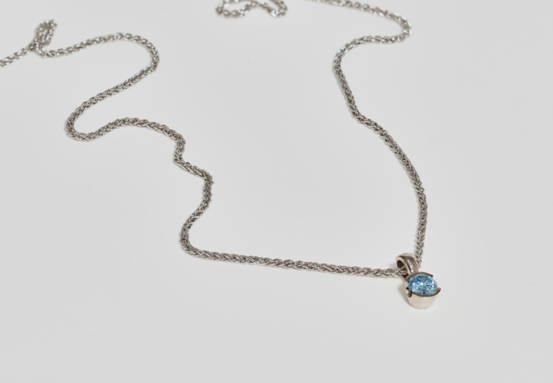 Witgouden hanger met petrol blauwe diamant