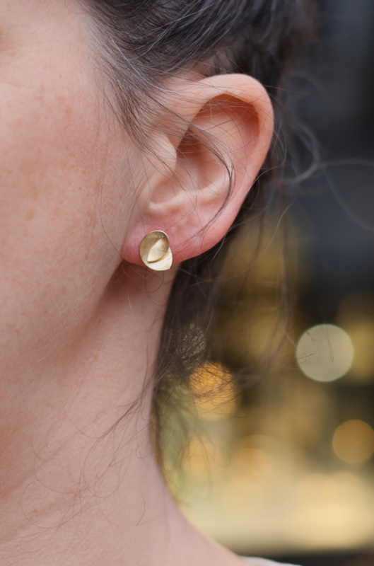 Mat geelgouden knopjes gemaakt door cardillac. Deze vrolijke oorbellen hebben een klein diamantje in het midden van de "vouw" vorm.