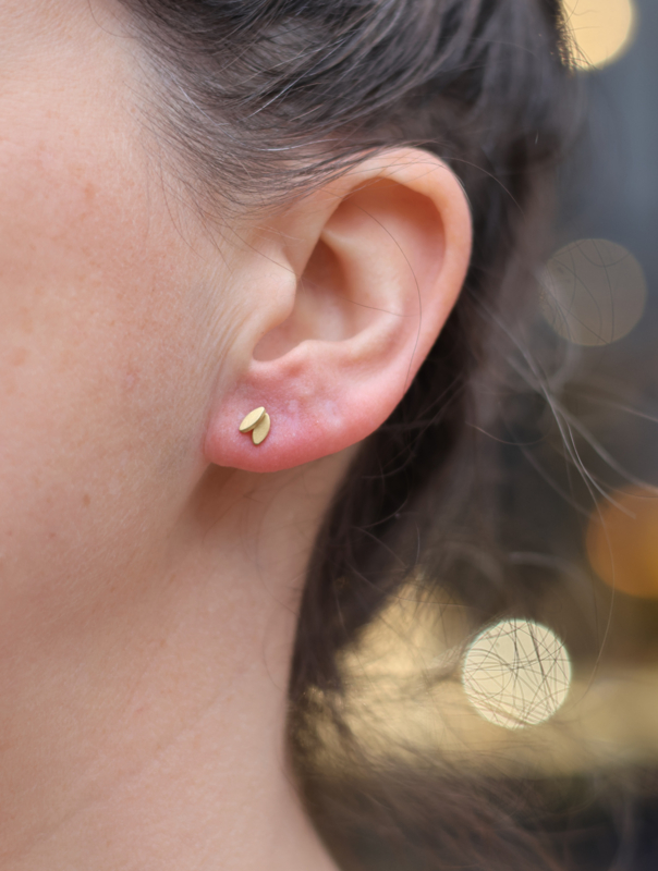 Kleine oorknopjes (6 mm) gemaakt door Tezer. Deze geel gouden knopjes bestaan uit 2 kleine gouden plaatjes.