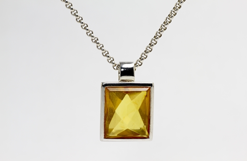 Zilveren hanger met gele steen, gemaakt in ons eigen atelier door Quin. Deze kleurrijke hanger bevat een vierkant geslepen, synthetische steen welke een heldere, gele kleur heeft. De hanger heeft een grootte van 16 x 14 mm. en wordt geleverd zonder ketting. Wilt U er een ketting bij laat het ons weten, info@gold-line.nl