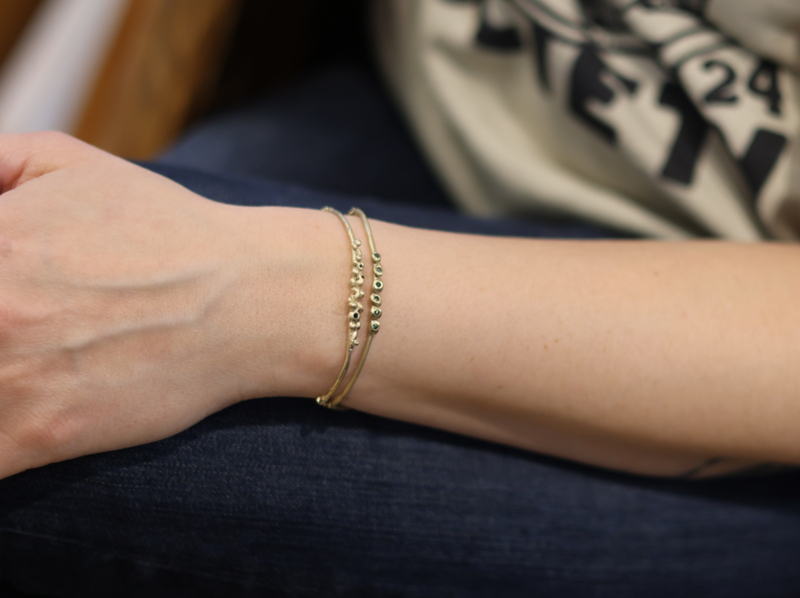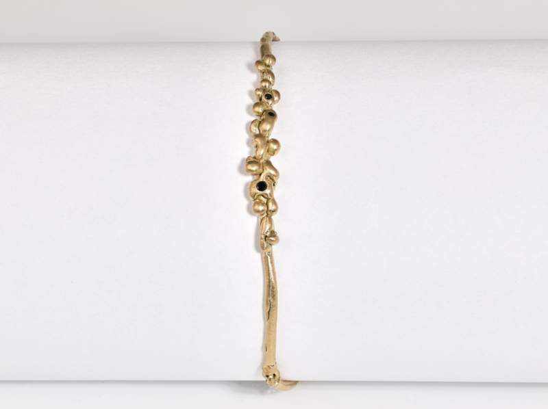 Geel gouden armband met kleine zwarte diamantjes, deze armband is gemaakt in ons eigen atelier uit de dripping art serie.