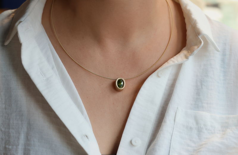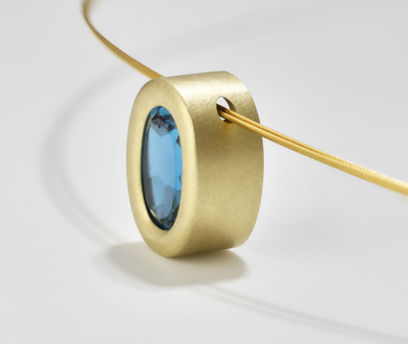 Geelgouden hanger met London blue Topaas gemaakt in ons eigen atelier. Een stevige zware gouden hanger met een robuust uiterlijk.