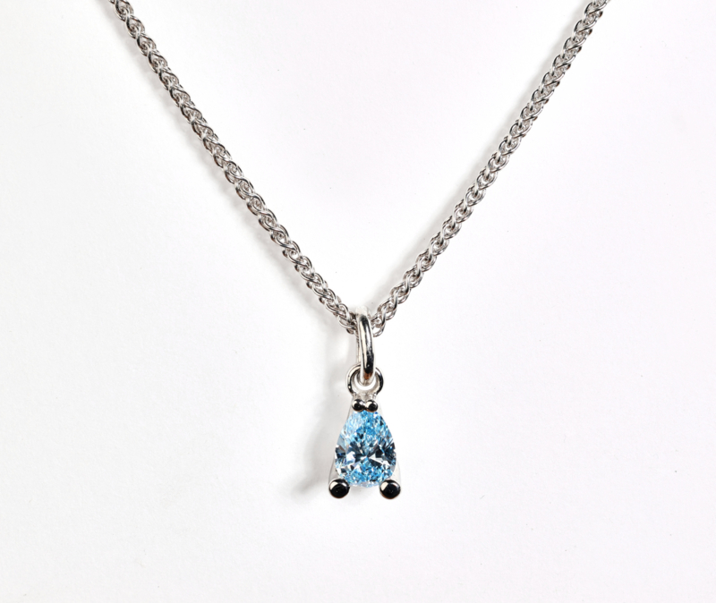 Platina hanger met ijs blauwe diamant (0,40 crt) in peer geslepen. Deze hanger is gemaakt in ons eigen atelier. De ketting is ook een platina vossenstaart (45 cm) schakel ketting, deze is bij de prijs inbegrepen (€ 690). Wilt u meer weten over dit sieraad laat het ons gerust weten info@gold-line.nl