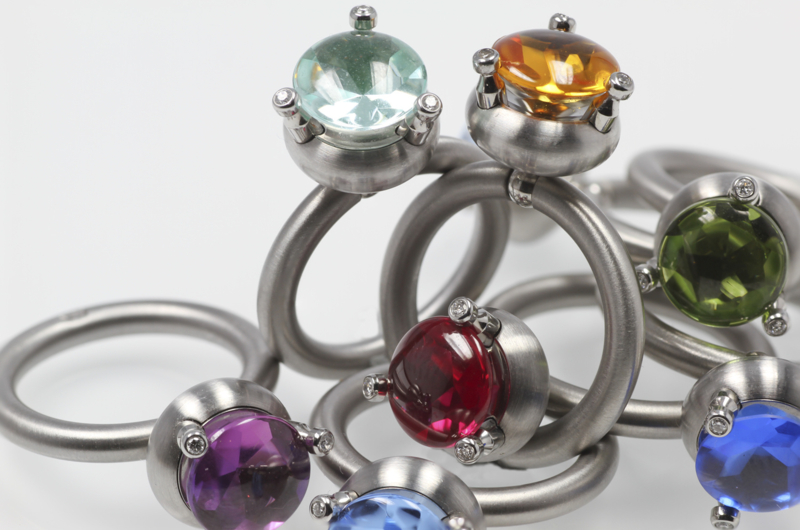 Een stalen ring met een erinite kleur (pastel groen) synthetische steen. De ring kan samen met andere ringen uit deze serie gedragen worden. Er zijn honderen combinaties mogelijk. De ring heeft maat 17, wilt u de ring graag op een andere maat, laat het ons gerust weteninfo@gold-line.nl