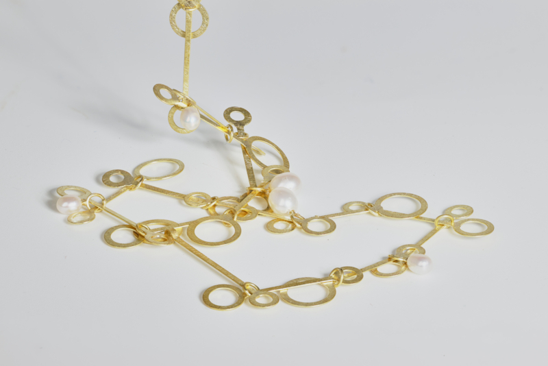 Gouden 18 karaat schakel ketting met parels, gemaakt door Maier en Beck. Deze prachtige gouden ketting straalt een tijdloze elegantie uit. De witte parels die her en der aan de schakles zijn geplaatst geven dit collier een klassiek resultaat maar zeker ook een verfijning. De lengte van dit collier is 44 cm.