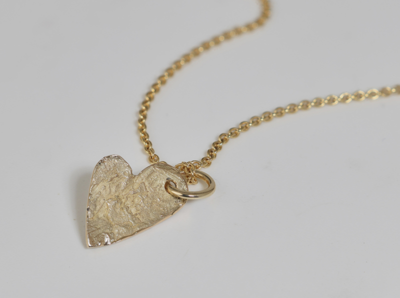 Deze hartvormige hanger is gemaakt van ruw bewerkt goud en heeft een afmeting van 14 mm.