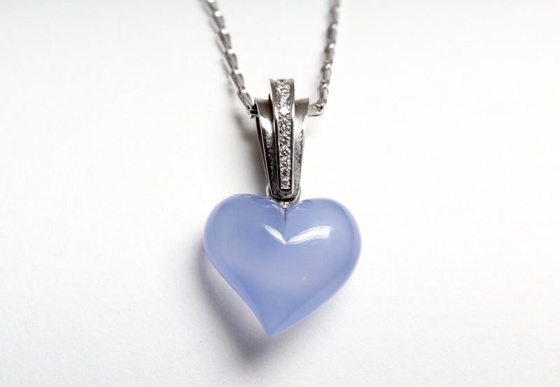 Chalcedonherz mit Öse aus Weißgold und Diamanten