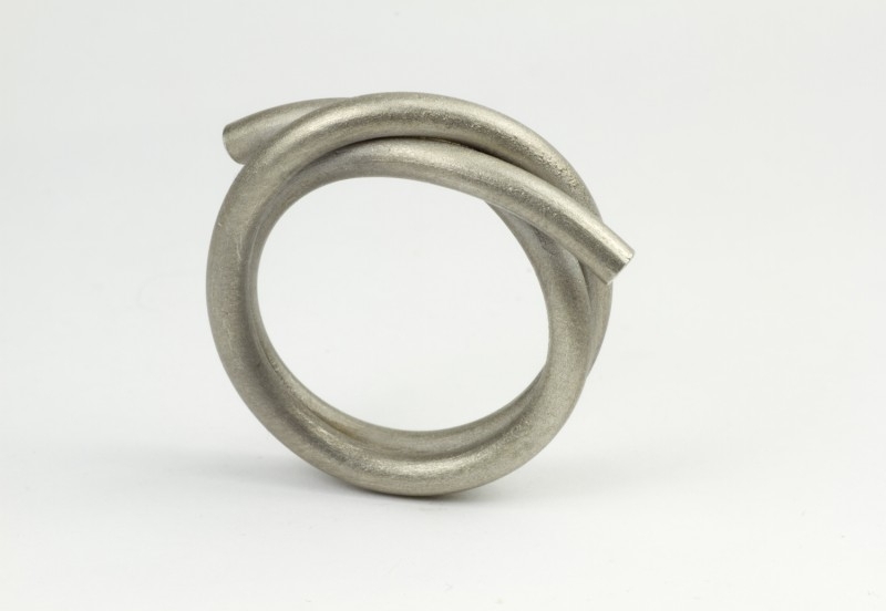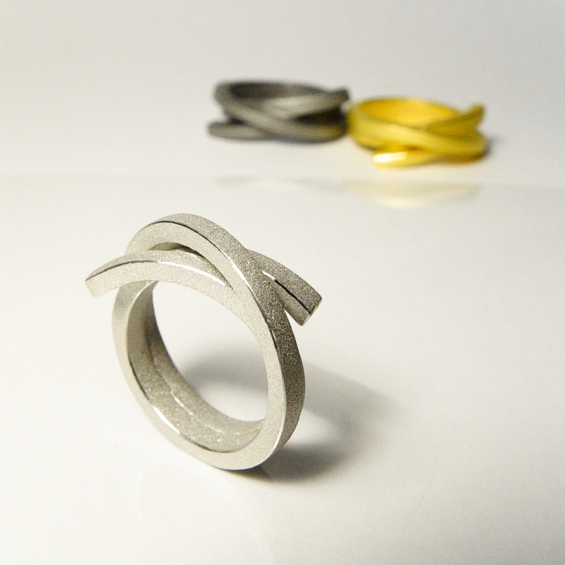 Silberring mit Überlappung, hergestellt von Martina Tornow aus Deutschland. Der Ring hat ein mattes, graues Finish, das diesem Schmuckstück ein cooles Aussehen verleiht.