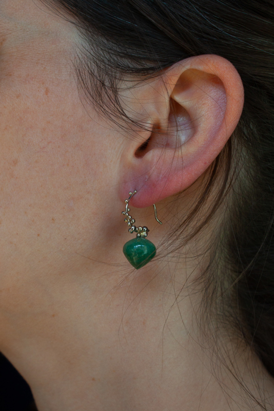 Medusa-Ohrringe mit Weißgold und Malachit