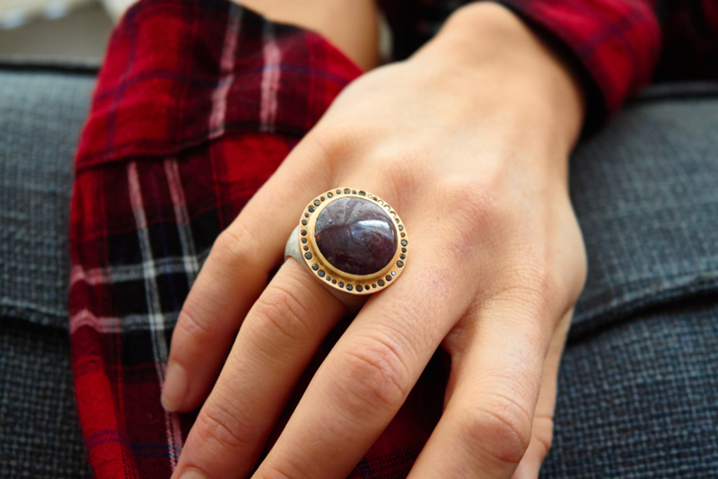 Cleopatra ring mit Rubin und schwarze Diamanten