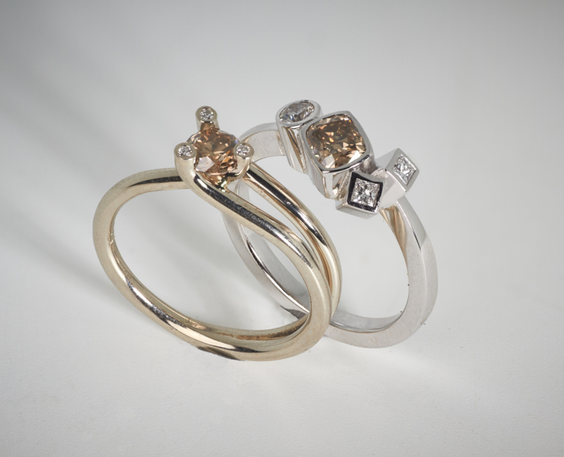 Weißgoldring aus eigener Werkstatt. Dieser Ring wird Straußring genannt, weil die Diamanten wie ein Blumenstrauß am Finger liegen. 1x ein hellbrauner Diamantschliff in Kissenform mit einem Gewicht von 0,46 ct, 1x Brillantschliff von 0,10 ct und 2x Princess (Quadrat) Schliff von je 0,05 ct. Eine wahre Party am Finger! Der Ring hat die Größe 53. Möchten Sie den Ring in einer anderen Größe haben, teilen Sie mir dies bitte mit info@gold-line.nl